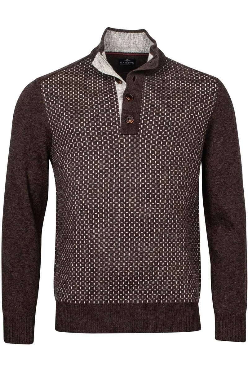 Schöner Baileys Tailored Fit Pullover in der Farbe dunkelbraun, Gemustert. Ein tolles, vielseitig kombinierbares Kleidungsstück von Baileys, das sehr angenehm zu tragen ist. Das Material ist 100% Schurwolle.
