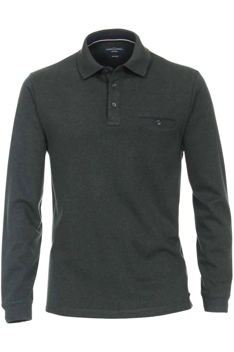 Schönes Casa Moda Casual Fit Longsleeve Poloshirt in der Farbe dunkelgrün, Gemustert. Ein tolles, vielseitig kombinierbares Poloshirt von Casa Moda, das sehr angenehm zu tragen ist. Das Material ist ein feines Piqué-Gewebe aus 62% Baumwolle / 38% Polyester.