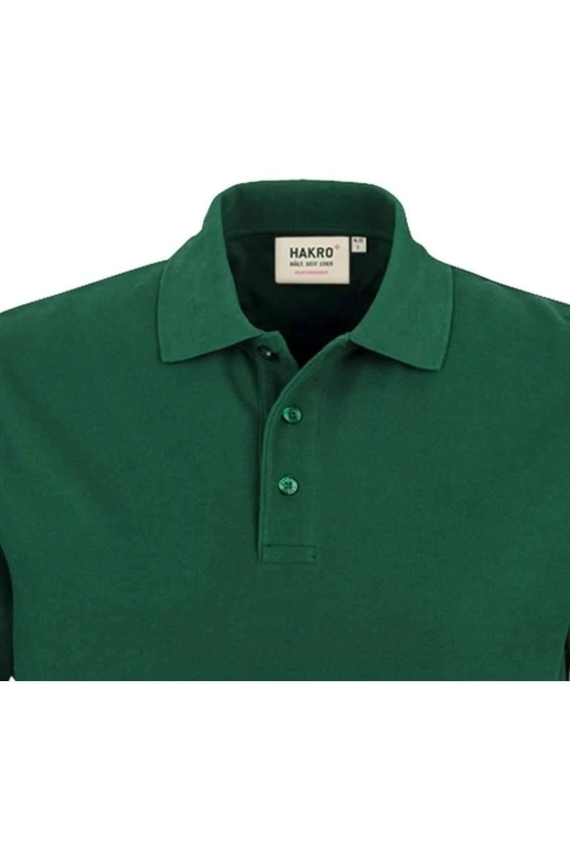 Schönes HAKRO Poloshirt in der Farbe dunkelgrün, Einfarbig. Ein tolles, vielseitig kombinierbares Poloshirt von HAKRO, das sehr angenehm zu tragen ist. Das Material ist ein feines Piqué-Gewebe aus 50% Baumwolle / 50% Polyester.