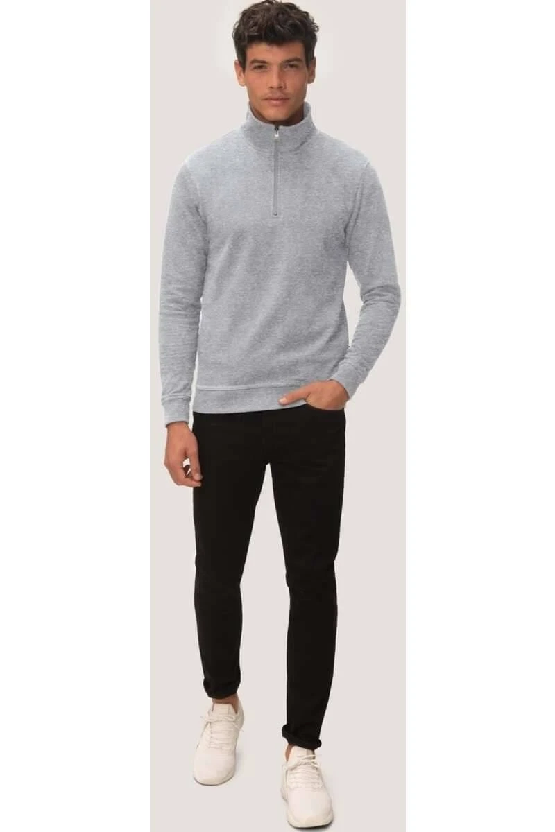 Wunderschönes HAKRO Comfort Fit Damen Troyer in der Farbe asche, Meliert. Ein tolles, vielseitig kombinierbares Kleidungsstück von HAKRO, das sehr angenehm zu tragen ist. Das Material ist 60% Polyester / 40% Baumwolle.