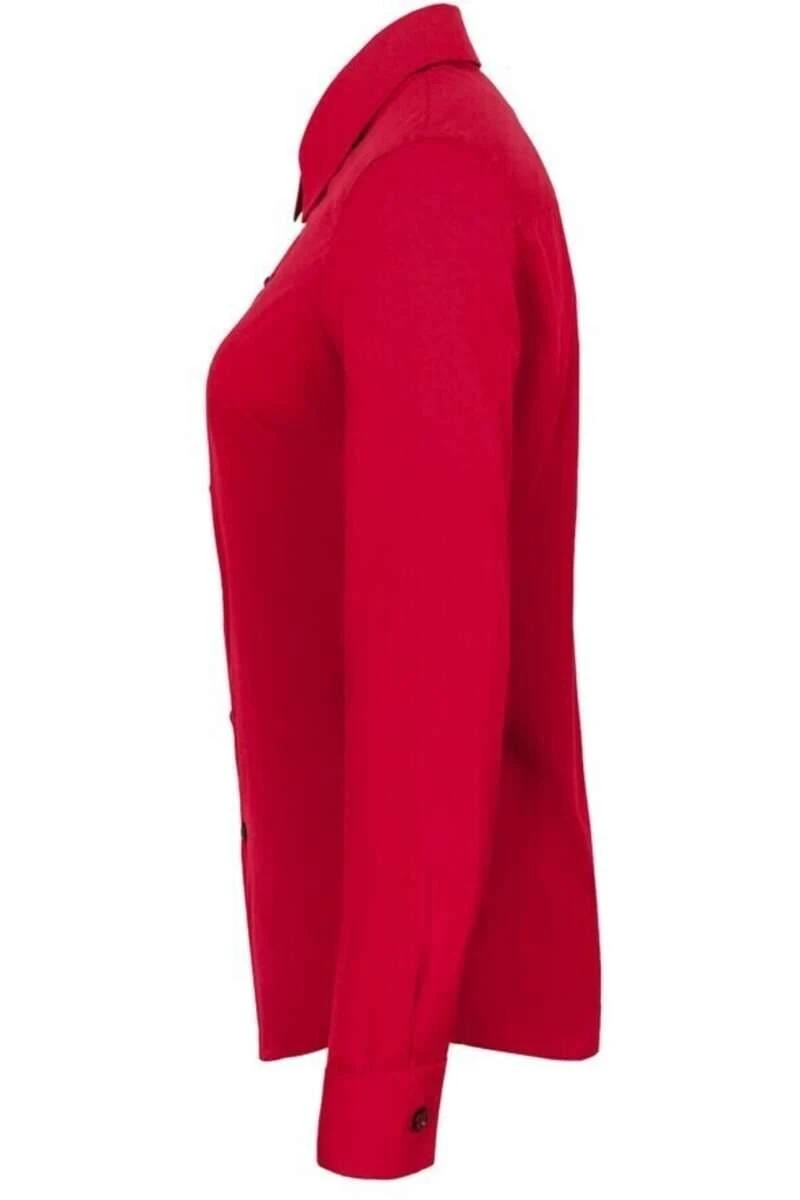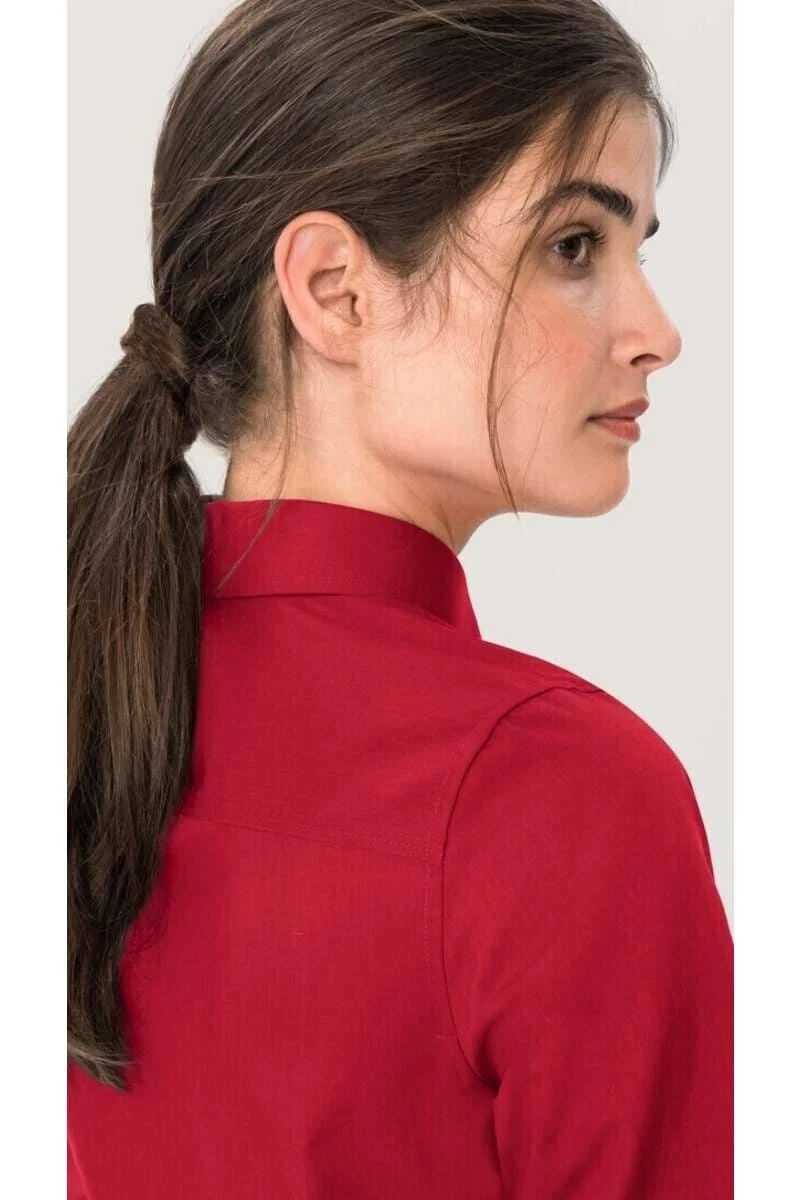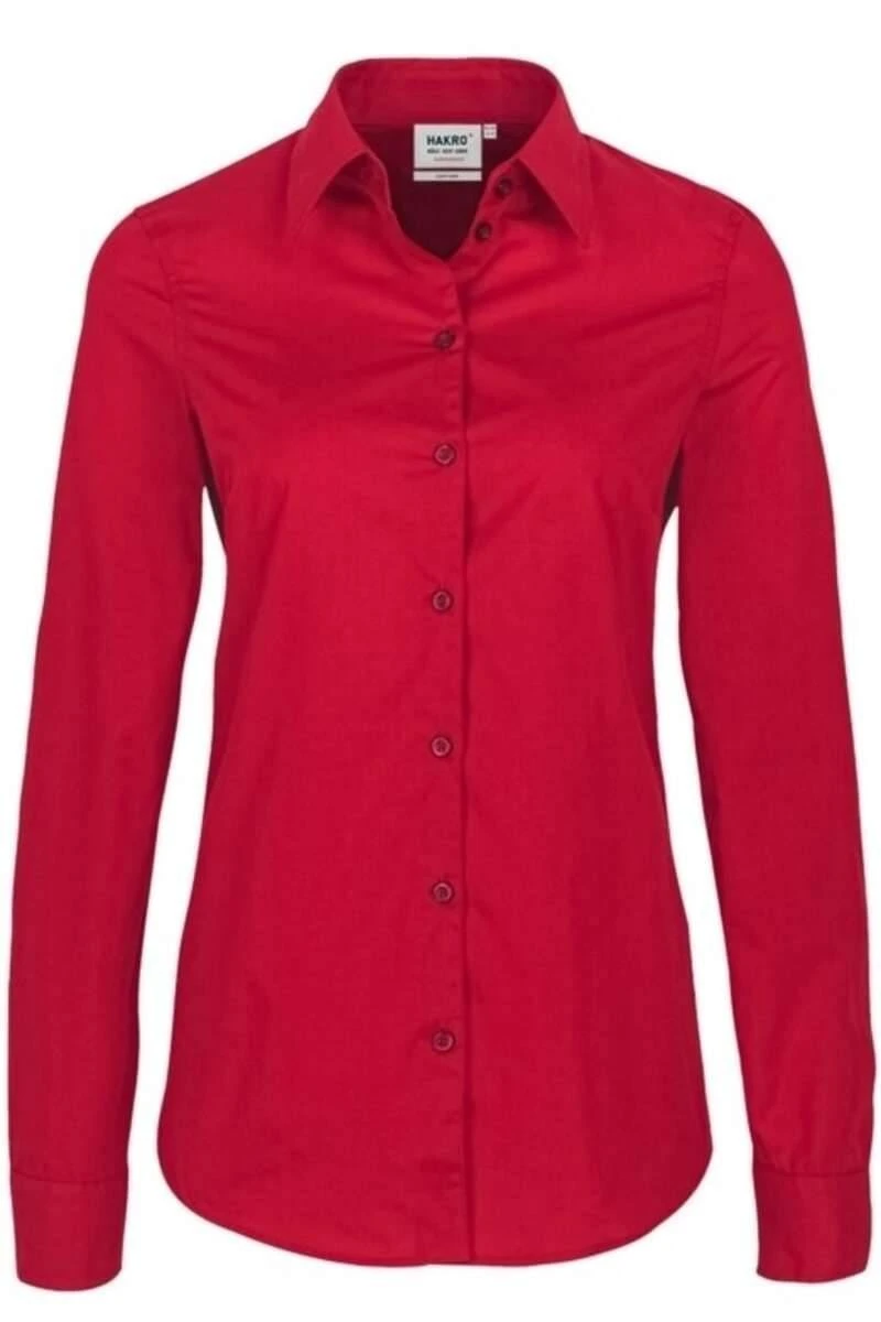 Schöne HAKRO Bluse in leicht taillierter Regular Fit Passform. Die Bluse ist rot – Einfarbig und aus 50% Baumwolle / 50% Polyester.