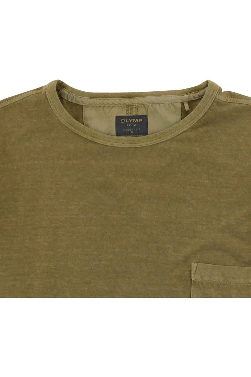 Das hochwertige Olymp T-Shirt in der Farbe khaki – Einfarbig. Gekämmte Baumwolle.